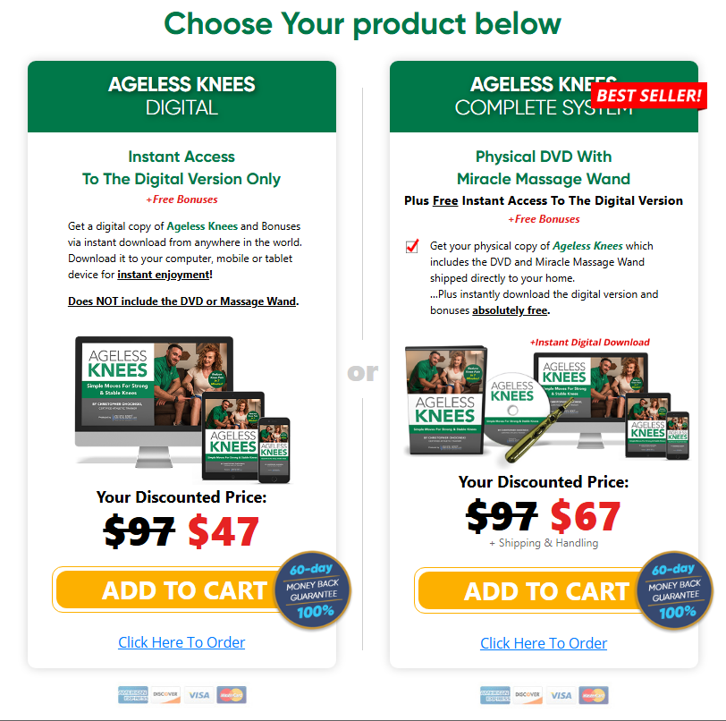 Ageless Knees Complete System~~$97~~$67 (+ S&H)Physical DVD + Miracle Massage Wand + Instant Digital Access